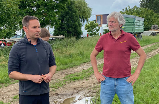 Feldbegehung mit Geschäftsführer Thomas Wolf zu verschiedenen Anbaukulturen und die Einflüsse des Klimawandels.