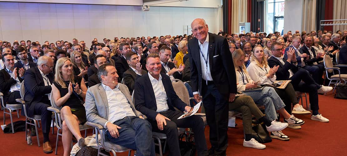 Georg Sedlmaier mit Lionel Souque, CEO REWE-Group (ganz links), und Stefan Hörnig, Vorsitzender der Geschäftsleitung REWE Region Ost.